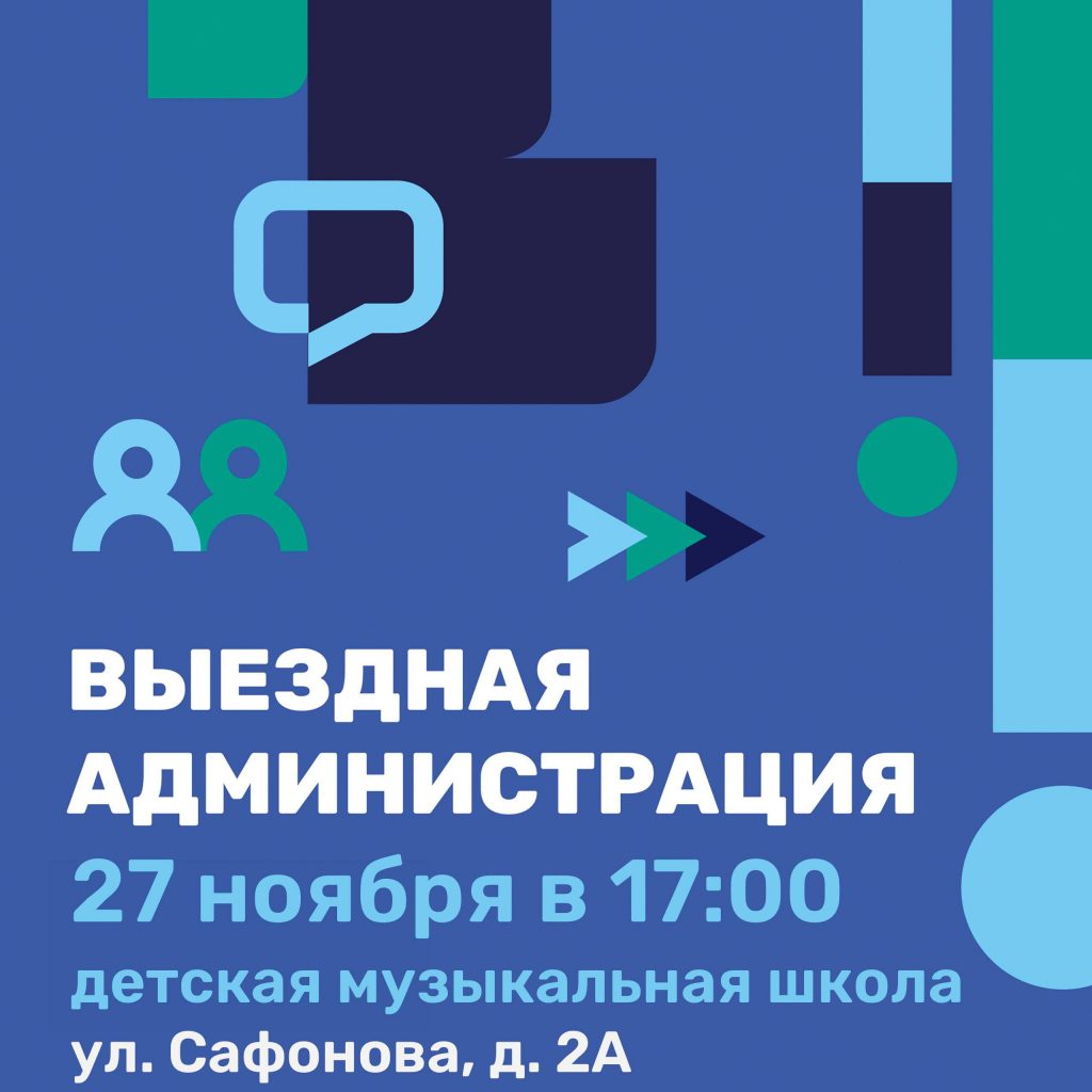 Приглашаю вас на открытый прием жителей в формате «Выездная Администрация» 27 ноября в 17:00 по адресу: ул. Сафонова, д. 2А (Детская музыкальная школа).